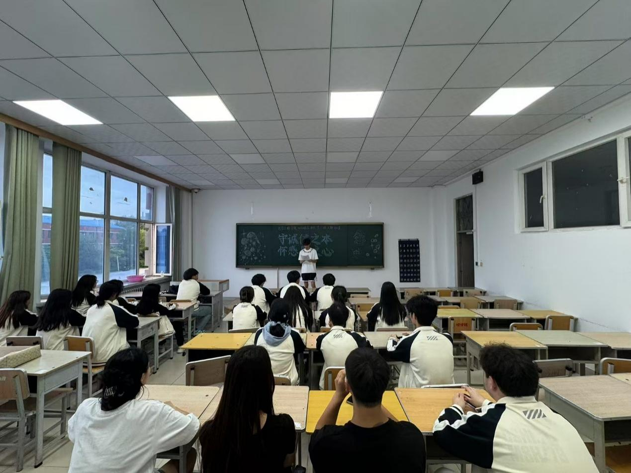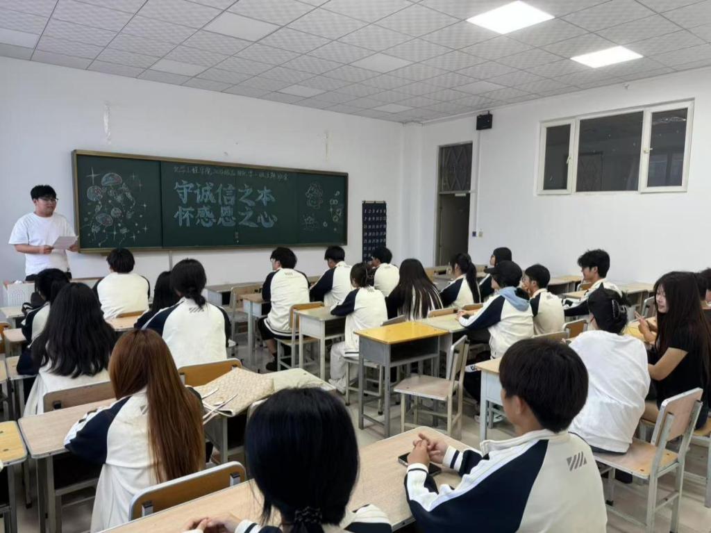 班会上,学生们主动担任宣讲员。他们通过讲述考试作弊、借款不还等诚信反面案例,剖析失信行为的后果;结合父母无私付出、老师耐心教导、同学热心帮助等真实故事,分享感恩感悟。宣讲过程中,穿插提问互动,以通俗易懂的语言阐释诚信与感恩的意义,引导同学们树立正确价值观,将诚信与感恩融入日常生活。