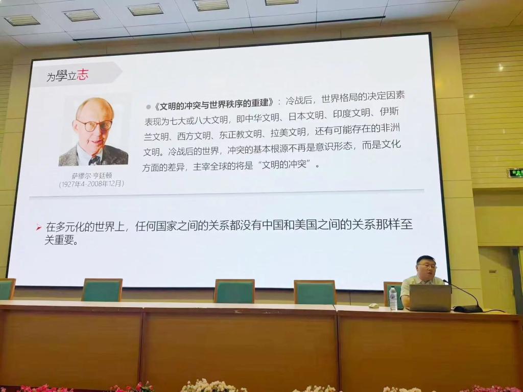 会议开始,陶冶围绕中西方文明的侧重与冲突展开讲解。他向新生引入亨廷顿“文化差异是冷战后冲突根源”的观点,同时对比张君劢在《人生观》中对中西方文明“重精神”与“重物质”的界定,结合部分青年受物质主义影响的实际案例,明确要求新生:在学习西方先进技术的同时,更需在文化传承与自我成长中,以传统文化凝聚精神力量、侧重精神文明培育,通过立德树人为社会主义接班人构建更全面的成长方向,筑牢自身精神根基。