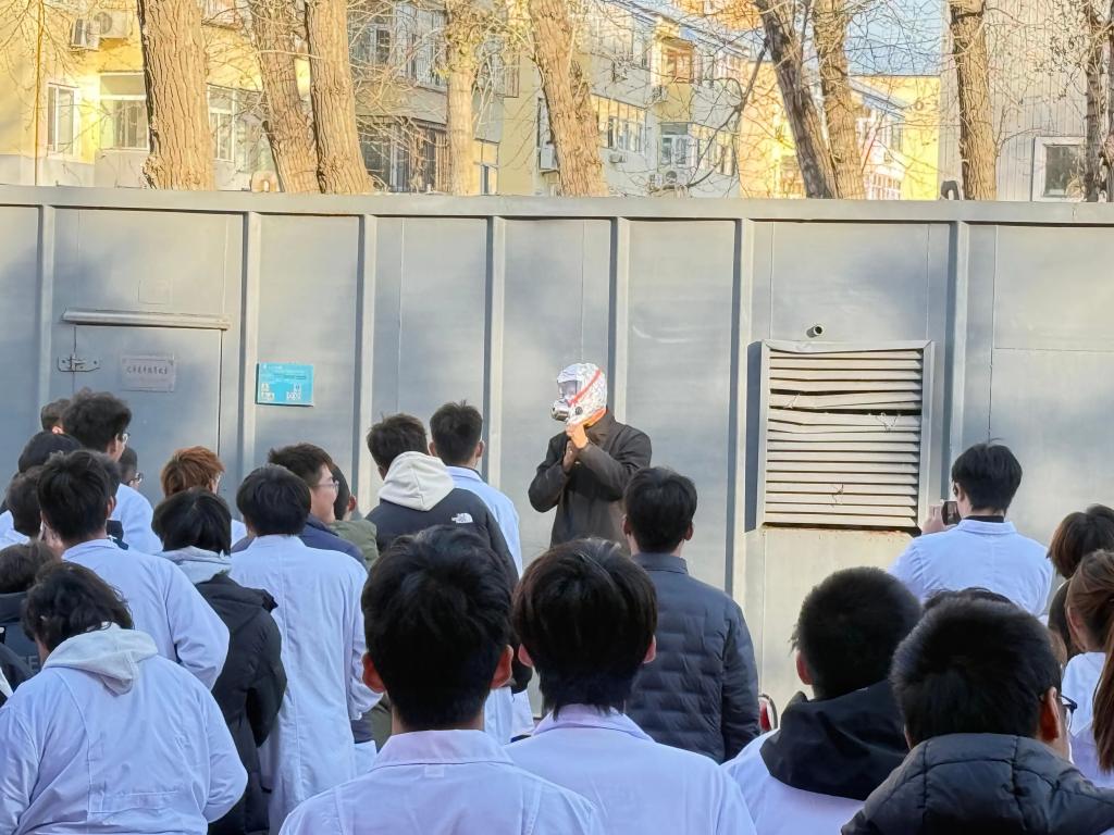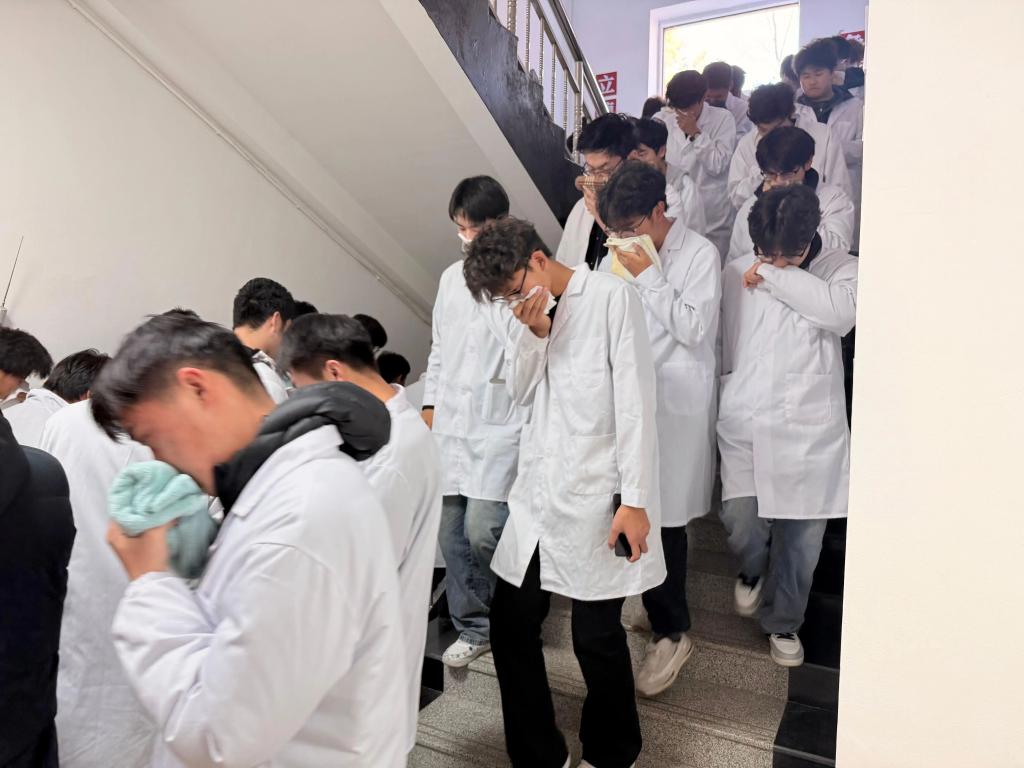 演练前,学校安全管理部门制定方案、明确分工与路线;实验教师普及逃生技巧及灭火器使用方法,后勤团队检修消防设施、清理通道、设置引导标识,全方位做好准备。火警警报响起,教师迅速组织学生有序撤离并保持安全间距,各班清点人数无遗漏,全体师生数分钟内安全集结,应急反应高效。演练后开展灭火实操培训,教师讲解火灾成因、扑救要点、器材选型及面具佩戴方法,范维老师现场示范关键操作,学生亲自上手实践。