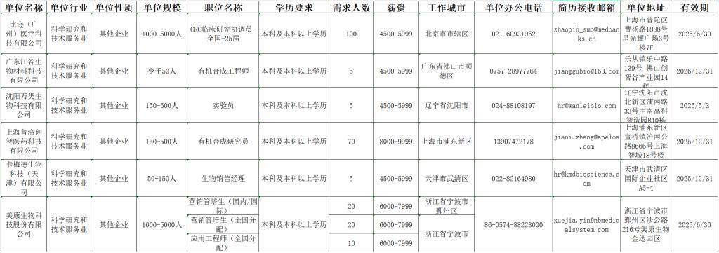【职等你来】(五十二)| 应用化学岗位招聘信息汇总