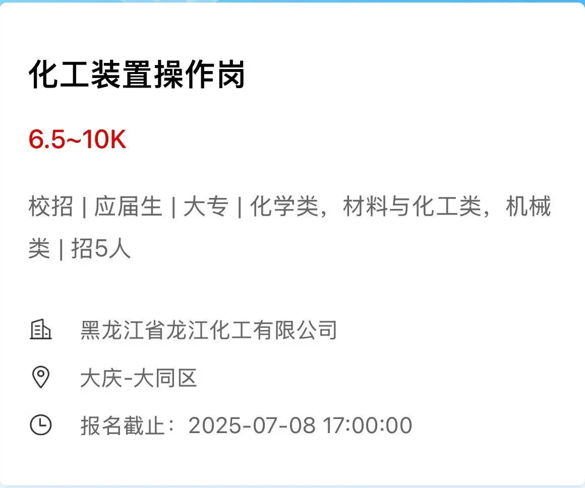 5、身体素质好,能够适应化工生产一线倒班岗位工作,服从组织分配。