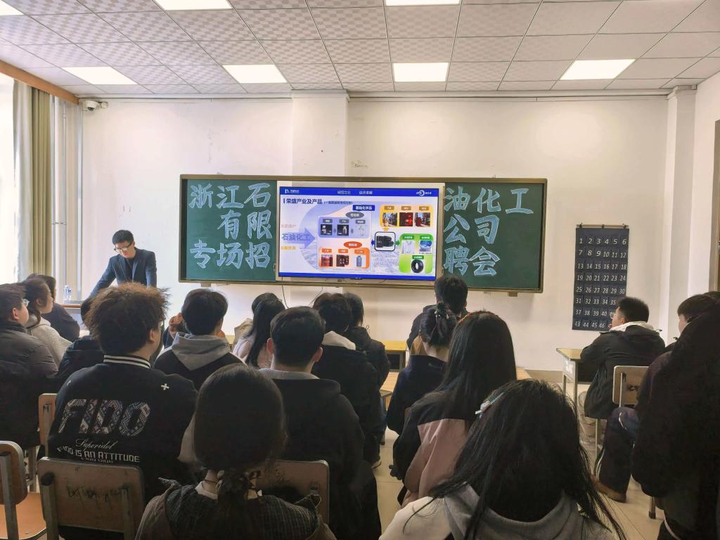 为深化校企合作,促进人才链与产业链精准对接,拓宽学生就业渠道,化学工程学院于3月27日召开浙江石油化工有限公司招聘宣讲会,众多学子到场参与。
