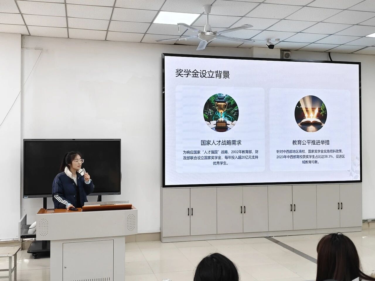 最后,邵子益为同学们详细解读了化学工程学院国家奖学金的评审细则与评分标准,从学业成绩、科研竞赛、综合素质、实践经历等多个维度进行了全面细致的讲解,帮助大家清晰了解评选要求、明确努力方向,为后续合理规划大学生活、冲刺更高荣誉提供了具体指引。