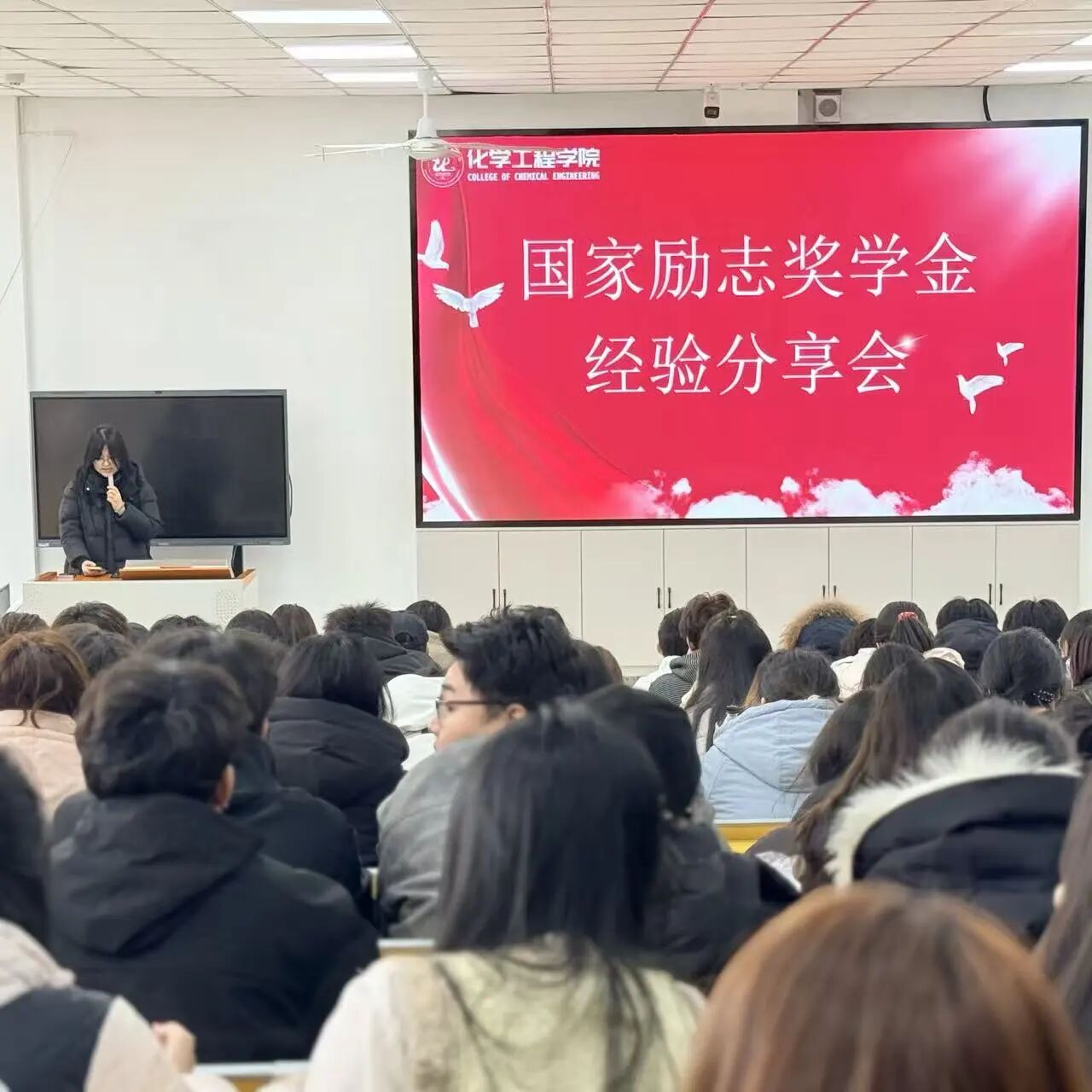 青春逐梦,励志笃行。为充分发挥优秀学生榜样示范作用,帮助同学们明确学习目标、掌握高效方法,树立正确奋斗方向,化学工程学院举办国家励志奖学金经验分享会。本次会议由辅导员邵子益主持。会议邀请2024-2025学年国家励志奖学金获得者刘佳睿与江蕊,让我们聆听她们的成长故事,汲取奋进力量。