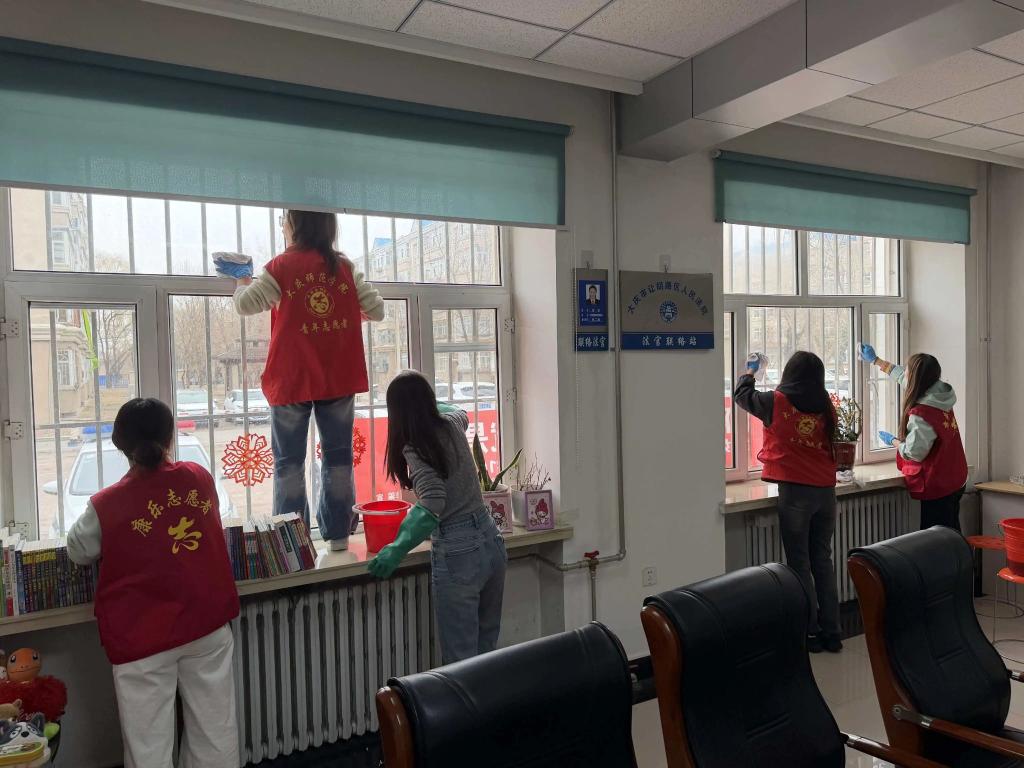 为弘扬“奉献、友爱、互助、进步”的志愿服务精神,化学工程学院青年志愿者们走进社区,联合社区人员开展环境清洁与便民暖心志愿服务活动,用实际行动为社区换新颜、为居民送便利。活动现场,志愿者们身着亮眼的红色青年志愿马甲,分工明确、干劲十足:有的志愿者站上窗台,认真细致擦拭社区办公场所的玻璃门窗;有的手拿垃圾夹与垃圾袋,沿着道路围栏、楼边绿化带,仔细捡拾、清理路面与边角的杂物垃圾;还有志愿者配合社区人员,排查检查公共设施、规整清理堆积杂物,齐心协力整治社区环境。一抹抹鲜亮的志愿红穿梭在社区各处,成为春日里最动人的风景线。此次志愿服务不仅改善了社区的整体人居环境,擦亮了社区文明底色,也拉近了青年学子与基层社区的距离。志愿者们用青春汗水践行责任担当,用点滴行动传递温暖力量,让志愿精神扎根基层、薪火相传,也带动更多人共同守护干净整洁、温馨美好的家园环境。