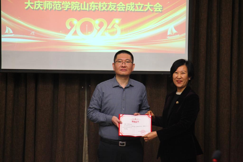 大会期间,全体参会人员共同观看了学校校庆宣传片《六秩逐光》,回顾学校60年的发展历程与育人成果。会议审议通过《大庆师范学院山东校友会章程》,并由校友代表选举产生第一届理事会成员。学校办公室主任、黑龙江省大庆师范学院校友会会长杜树祥,现场宣读了学校《关于同意成立大庆师范学院山东校友会的批复》及《大庆师范学院山东校友会第一届理事会成员组织架构名单》。
