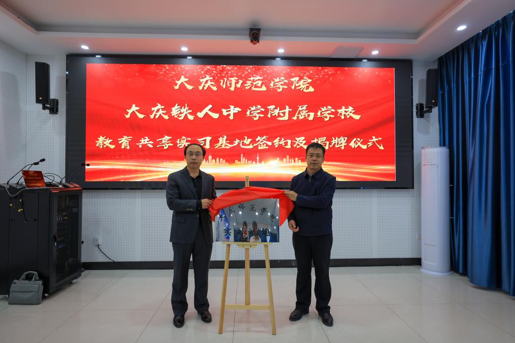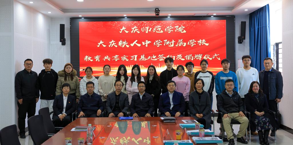 在大庆铁人中学附属学校,座谈会由该校副校长殷克军主持,铁中附校领导班子、我校两名集中实践锻炼教师及实习、见习学生代表参加。会上,该校书记蒋严学围绕两校在教育实习、师资培训、微课题研究、科学实验室建设及党建工作等方面的深化合作提出需求;副校长于春媛介绍了2位实践锻炼教师的工作推进情况,以及混合编队师范生实习、见习的具体表现。实践锻炼教师代表代丽平和师范生代表同样分享了两月来的实践感悟与收获,我校学院领导与师生展开深入交流。会议期间,大庆师范学院与大庆铁人中学附属学校举行了教育共享实习基地签约及揭牌仪式,标志着两校在协同育人领域的合作迈入新阶段。