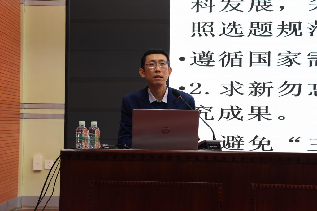 许双毅作动员讲话。他指出,高层次科研项目不仅是衡量学校学科实力的关键指标,更是助推教师专业成长、实现自我超越的重要平台。面对当前科研项目申报的新形势与新挑战,他详细阐述了学校在申报服务优化与资源配套保障等方面的具体举措,并号召全体教师积极把握机遇,提早谋划、认真准备,力争以高水平的申报材料,获得立项数量的新突破,共同为学校科研事业的高质量发展贡献力量。