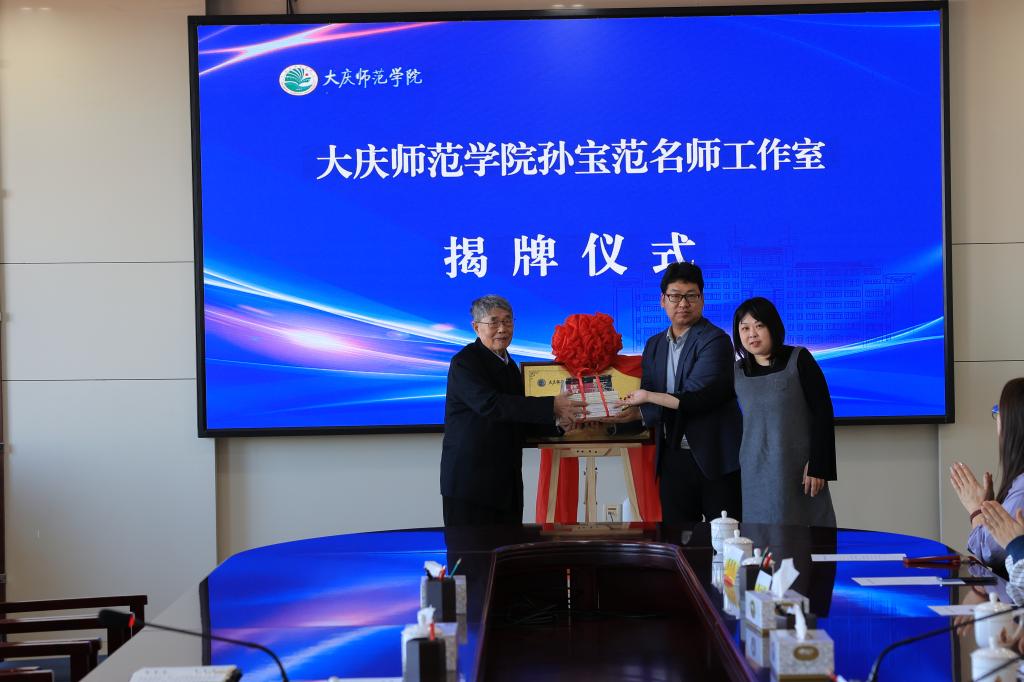 滕强与孙宝范共同为孙宝范名师工作室揭牌。