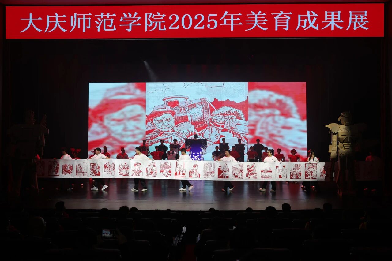 美育精品展《指尖裁锦绣 版拓铸匠心—剪纸版画传承》立足大庆红色资源,将剪纸、版画等传统艺术与红色主题相结合,展现了文化传承与精神弘扬的创新融合;朗诵《永远的号子》以饱满的情感与铿锵的话语,致敬铁人,致敬石油人,抒发“我为祖国献石油”的豪迈情怀。