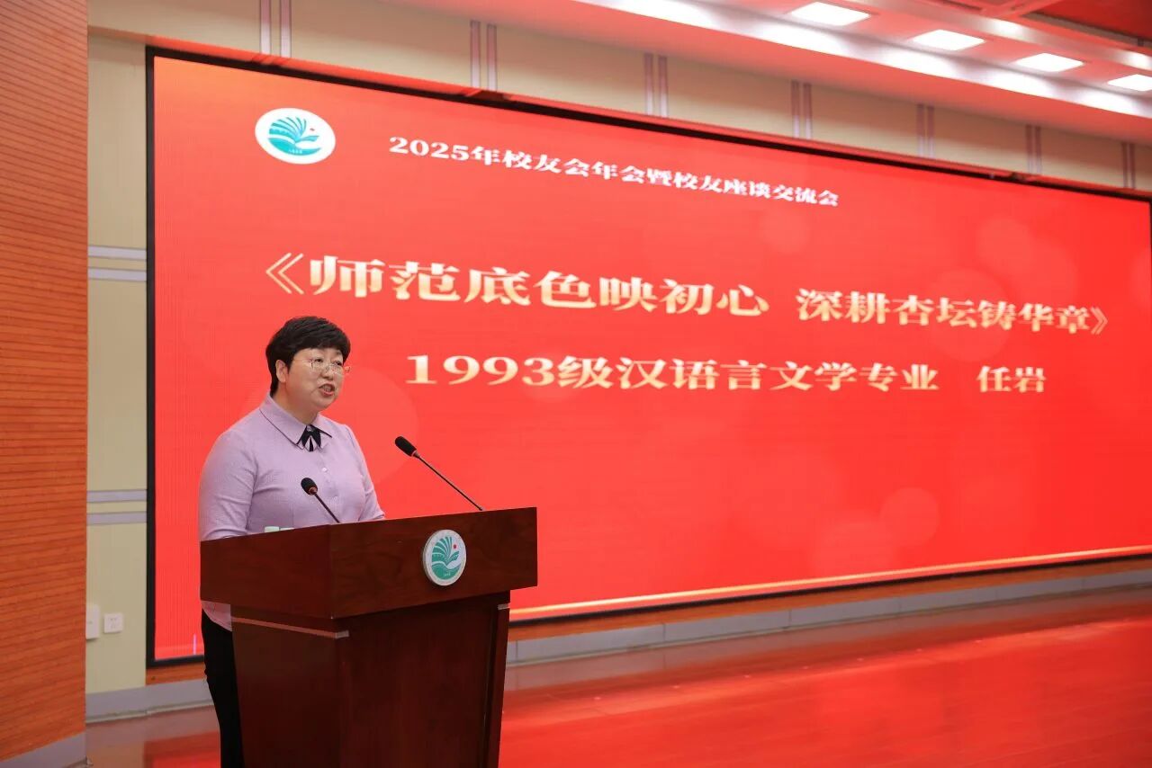 黑龙江省大庆师范学院校友会会长、学校办公室主任杜树祥作工作报告,全面总结校友会规范化建设成效、60周年校庆系列活动成果、校地企合作签约进展,以及全国22个校友会联络体系建设情况,并明确了未来工作方向:常态化开展校友活动、完善区域校友会布局、打造校友宣传交流平台,持续夯实校友工作基础。座谈交流环节,五位不同领域的优秀校友代表依次登台分享,情真意切、干货满满。大庆市人才工作中心主任、1997级数学教育专业校友杨瑞金以“以校为根 与城共生”为题,用详实数据展现庆师毕业生在大庆各条战线的中坚作用,分享校地人才协同发展的丰硕成果;大庆市外事办主任、1998级英语专业校友胡婷婷围绕“承母校荣光 担时代使命”,为母校国际化办学建言献策,提出健全海外校友联络机制、探索轻资产合作模式等宝贵建议;大庆市校友会会长、1985级汉语言文学专业校友宋丽梅分享校友会“以商养会、以会促商、抱团取暖、共同发展”的实践路径,呼吁全国校友联动资源,助力大庆振兴发展;大庆市乘风第二小学校长、1990级体育专业校友刘庆海以“承庆师底色 扬排球风采”为主题,介绍依托排球特色育人、深化院校协同发展的办学成果;1993级汉语言文学专业校友任岩深耕教育一线27载,聚焦师范人才培养,提出“双导师制”“双技术驱动”等建议,强调理论与实践深度融合,为母校人才培养精准赋能。校友们的分享,既有个人奋斗的成长感悟,更饱含反哺母校、助力家乡的责任担当,赢得现场阵阵掌声。