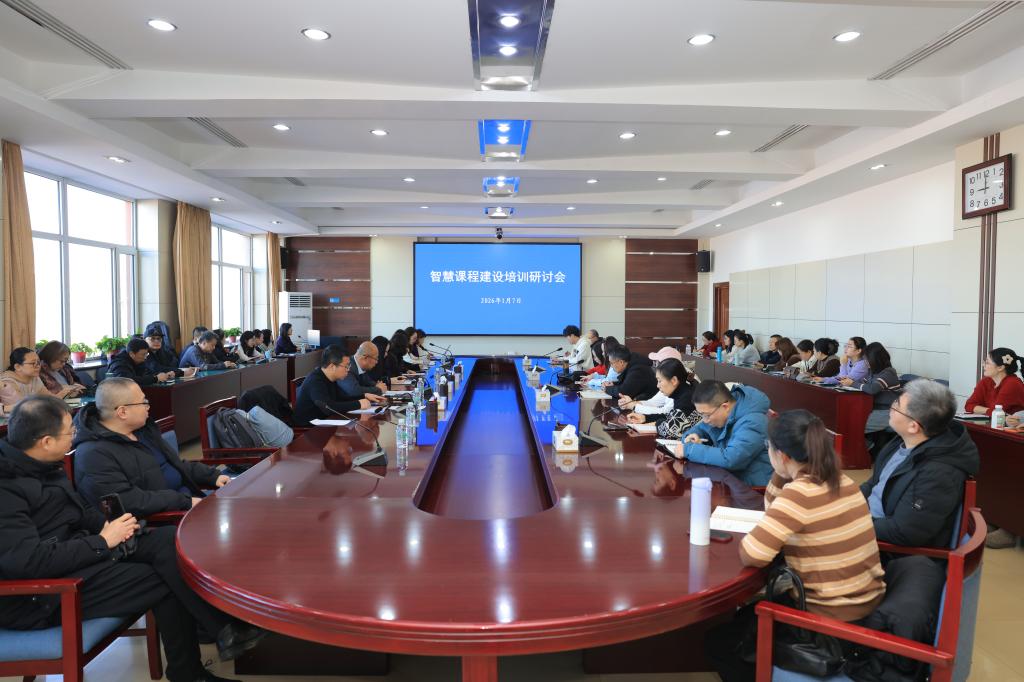 为顺应教育数字化转型趋势,推动AI技术与课程建设深度融合,提升教师智慧课程设计与教学创新能力,2026年1月7日,学校在主楼733会议室举办智慧课程建设培训研讨会,部分校级及以上一流课程负责人、二级学院有智慧课程建设意向教师共50余人参加培训。会议由副校长周丹主持。