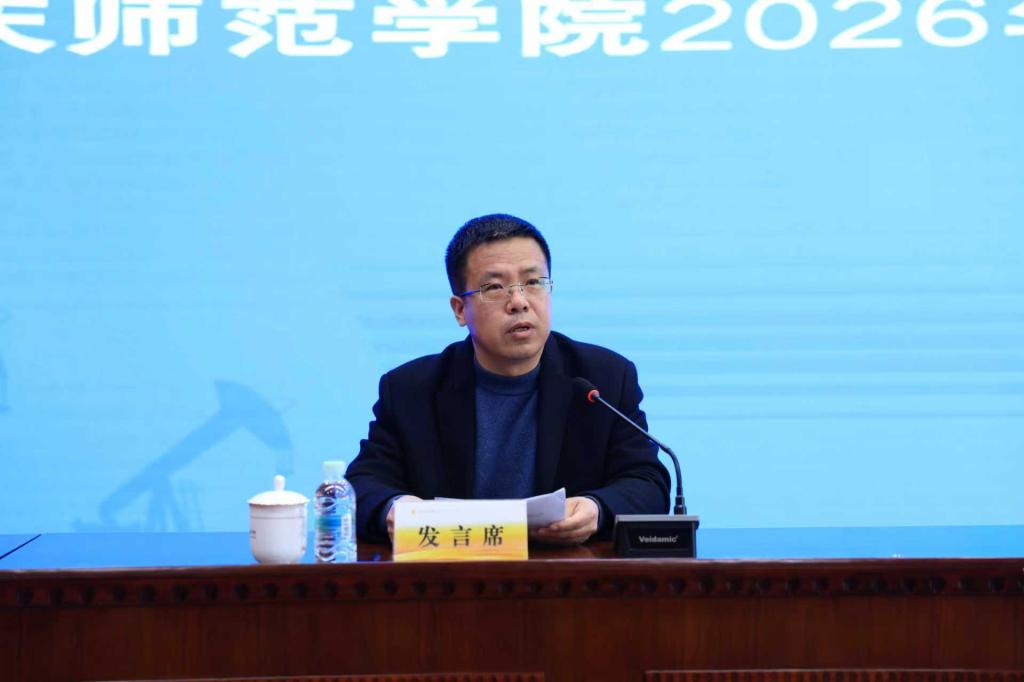 康忠伟代表学校安全工作委员会作安全工作报告,全面回顾2025年学校在责任体系构建、隐患排查整治、安全教育演练等方面的工作成效,剖析现存问题,围绕完善责任体系、强化风险预警、深化专项治理三大方面明确2026年校园安全工作具体任务。并对落实会议精神提出三点要求,一是强化政治引领,以更高站位扛起安全责任。二是聚焦重点领域,以更实举措织密防控网络。三是狠抓任务落实,以更好成绩护航事业发展。