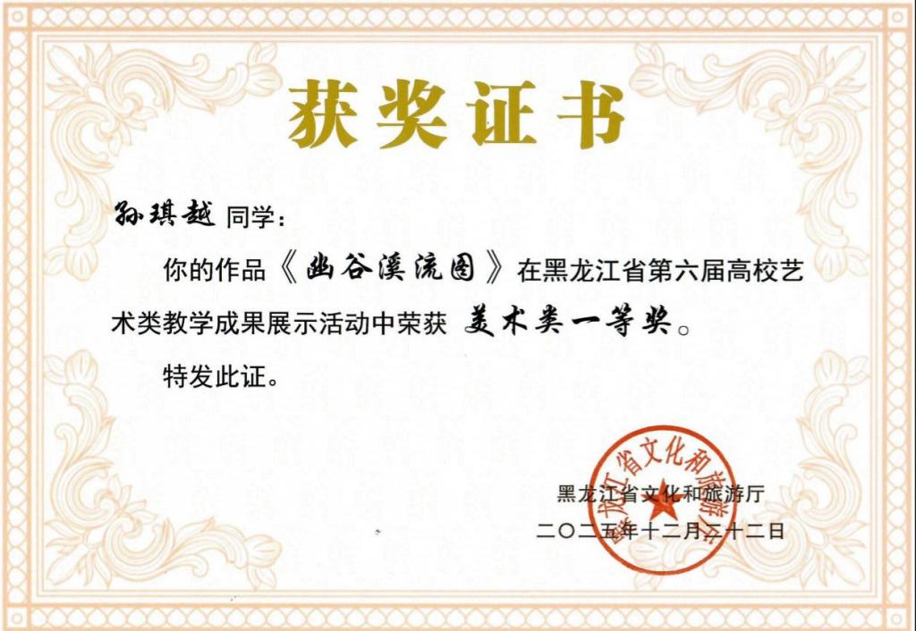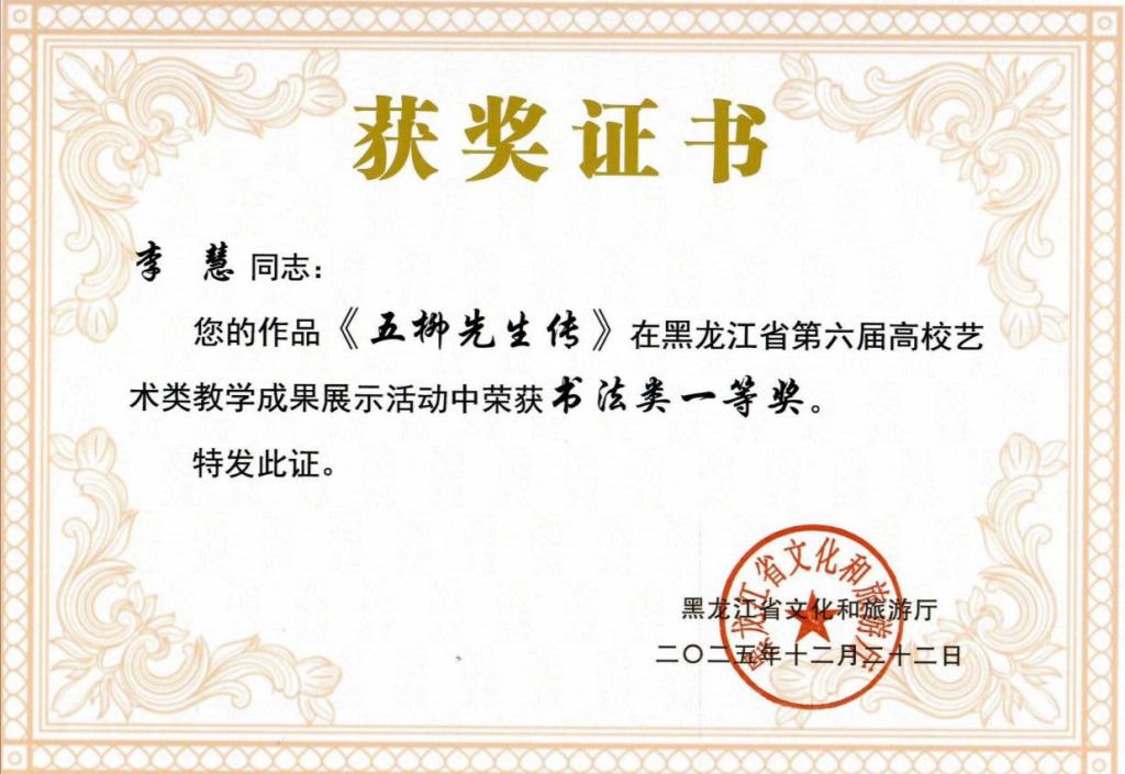 以赛促教攀高峰,以艺育人启新程。此次获奖,既是对我校师生专业能力与创作水平的高度肯定,也是我校长期深耕艺术教育、深化教学改革的生动体现。今后,我校将以此为契机,总结参赛经验,持续强化艺术实践教学,坚持“以赛促教、以赛促学、以赛促创”的育人理念,将学科竞赛与日常教学深度融合,搭建多元化实践平台,注重提升师生的艺术素养与创新能力,鼓励师生深入生活、扎根黑土,创作出更多兼具思想性与艺术性的优秀作品,为黑龙江省艺术教育事业进步贡献力量。(来源:教务处 撰稿:刘文文 审核:张国发 编辑:姜丰翼)
