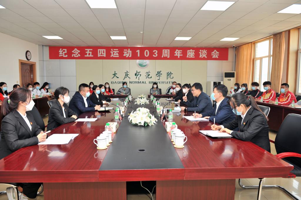 5月4日下午,校团委在主楼633会议室召开纪念五四运动103周年座谈会。校党委副书记、工会主席徐晓东,青年教师、学生代表参加座谈会,会议由校团委副书记张雷主持。
