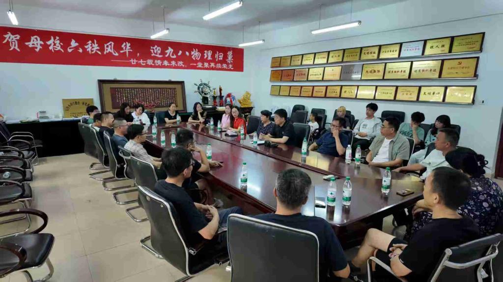 8月2日清晨,机电工程学院301会议室鲜红的欢迎横幅“贺母校六秩风华,迎九八物理归巢”格外醒目。机电工程学院党总支副书记董云峰主持座谈会并介绍了学校60年的发展历程——从1965年油田创办初期的大庆师范学校,到如今拥有14个学院、45个本科专业的综合性院校,大庆精神铁人精神始终是不变的底色。班主任付保红老师领同学们一起回忆了初入大学时的情景并对校友们未来工作付以殷切嘱托。