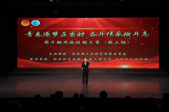 为深入学习贯彻习近平新时代中国特色社会主义思想,全面提升团干部思想政治素质和业务能力,11月12日,由校团委主办,数学科学学院、机电工程学院、马克思主义学院联合承办的第十五届红色文化月活动“青春逐梦正当时 奋斗传承燃斗志”团干部思政技能大赛(教师组)决赛在我校大学生活动中心顺利举行。