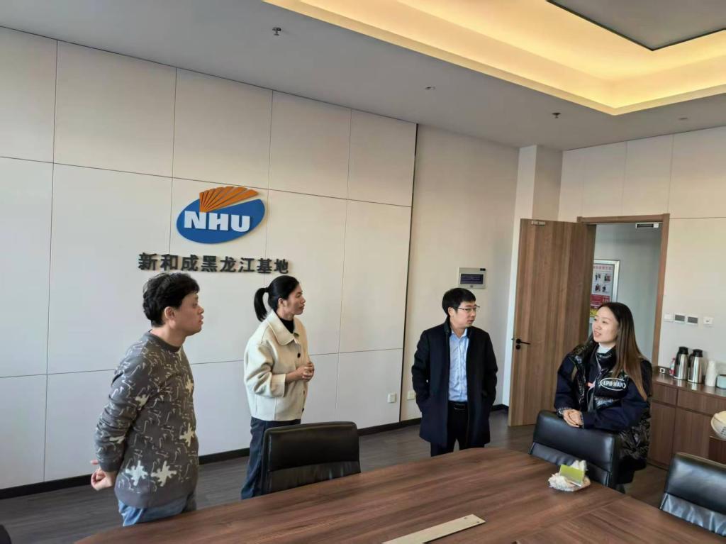 2025年11月14日,我校生物工程学院党总支书记、院长任国领,化学工程学院党总支书记陶冶和相关工作人员赴黑龙江新和成生物科技有限公司进行校企合作交流,并签署“校企合作实习就业基地”协议。