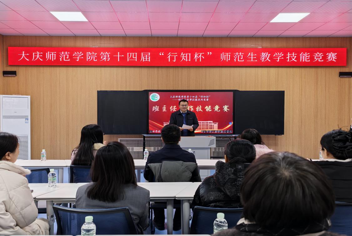 11月26日下午,我校第十四届“行知杯”师范生教学技能系列竞赛——班主任工作技能竞赛在教师技能训练中心圆满落幕。作为学校培育师范生核心能力的关键赛事,本次活动由教务处主办、教师教育学院承办,教师教育学院教学负责人李锋主持,他在开幕词中着重强调了班主任工作技能对未来教育实践的重要价值,随后教师教育学院孙佳慧老师现场宣读比赛规则,明确赛事流程与相关要求,为竞赛顺利开展奠定了基础。