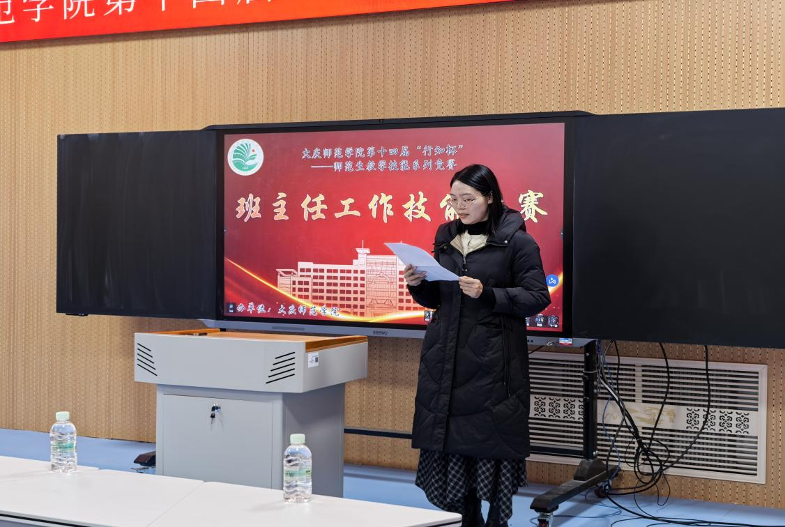 我校一直以来高度重视师范生培育,此次“行知杯”师范生班主任工作技能竞赛是一场专业素养与教育智慧的集中绽放,以提升教学实操水平、助力职业成长为核心导向,为全校师范生搭建了优质的交流学习与实践展示平台,充分展现了师范生们扎实的专业基础和出色的教学潜力。此次竞赛,不仅提升了同学们的教学技能,更增强了其对教育事业的热爱与担当。同时,比赛也反映出学校在教育教学改革路上的探索成效,为培养高素质的教育人才筑牢了根基。(来源:教务处 撰稿:孙佳慧 审核:张国发 编辑:姜丰翼)