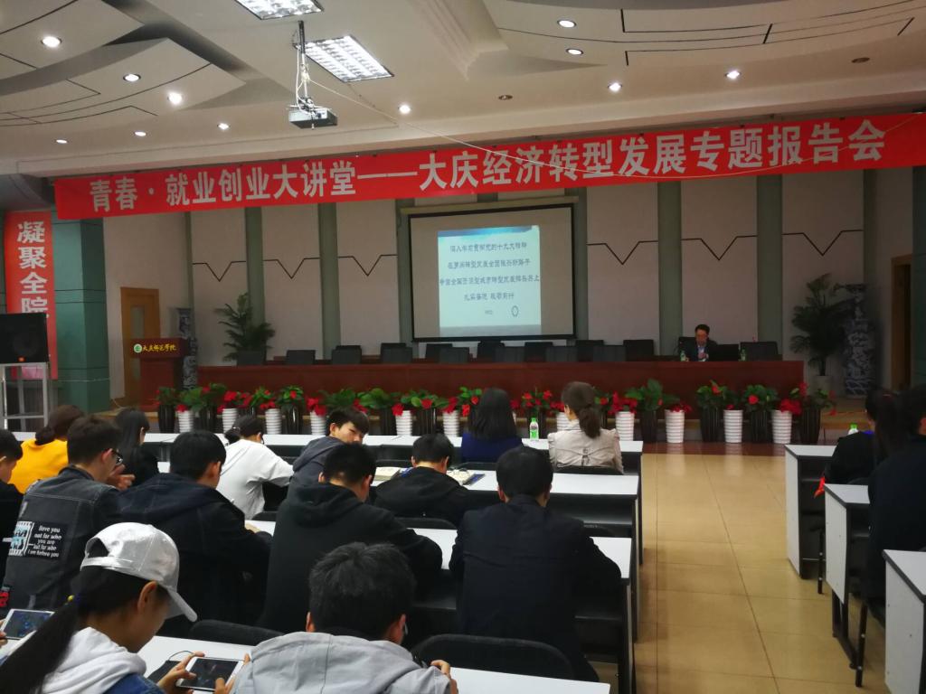 为了让学校师生充分了解大庆经济社会发展形势,引导学生毕业立足大庆求职发展,发现和抓住身边的就业创业机遇,4月19日由招生就业处和学生工作部(团委)共同举办的“青春·就业创业大讲堂”第二期活动在铁人讲堂精彩再现。职业发展教育教研室教师、二级学院部分教师、在校200余名大学生参加了报告活动。